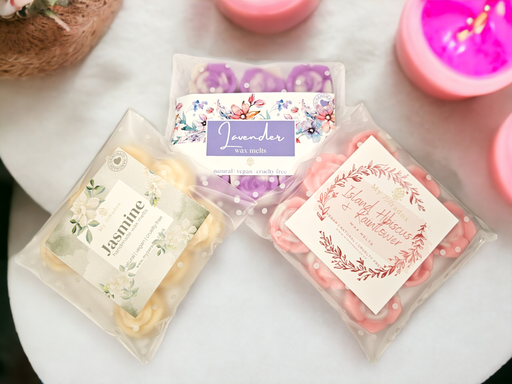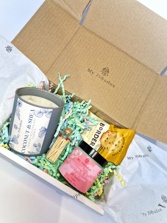 Surprise the people you love with this luxury gift box! Choose any 2 of our large candles and we will add a 3rd small candle for FREE as a surprise from us.